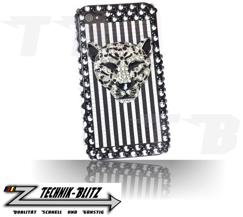 Die silberne Hülle im Leopardendesign ist der Blickfang für Ihr iPhone. Die Hülle ist sehr edel gearbeitet und mit vielen schönen Strass-Steinen verziert.